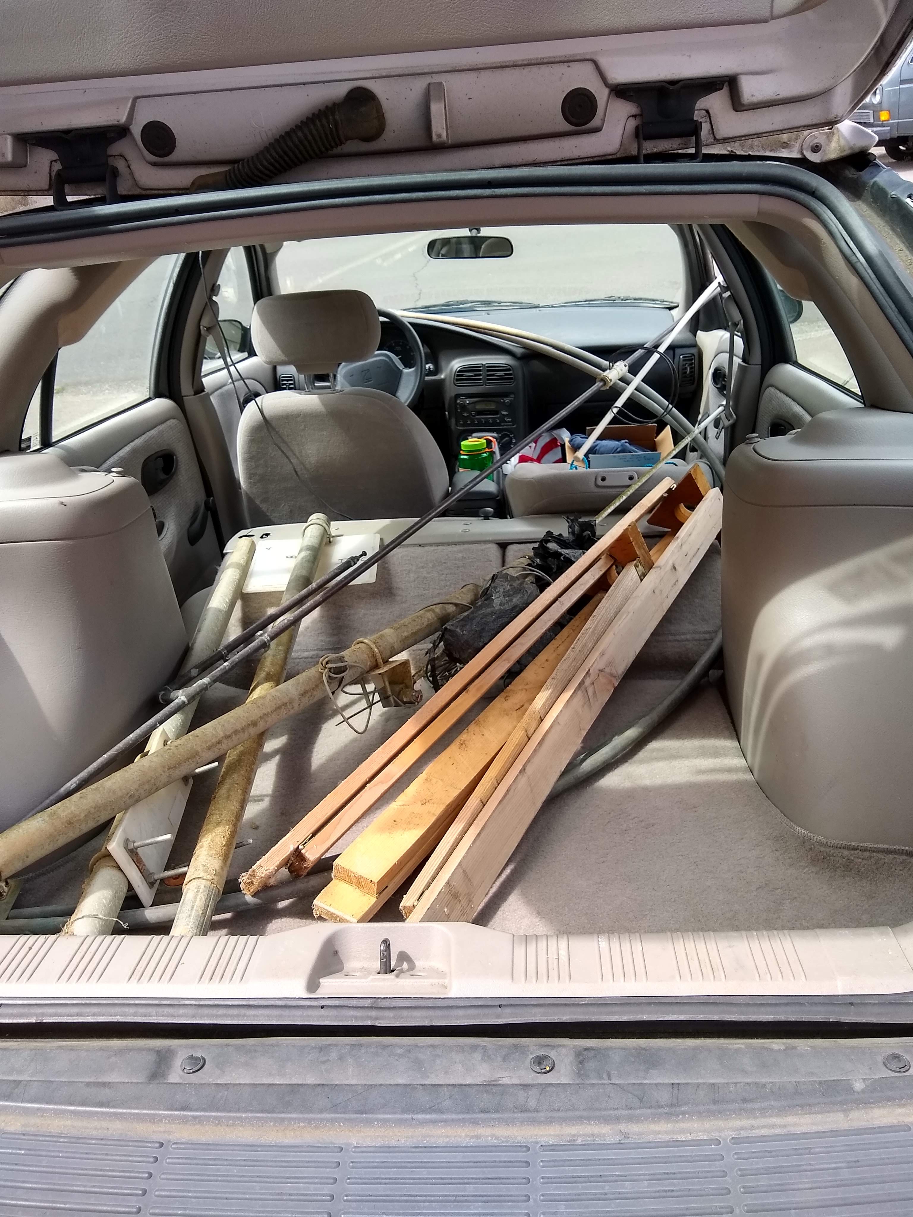 Loop antenna, as received as a gift from a local ham. It came with everything but the vacuum variable capacitor. We had to unsolder one of the copper pipe joints to make it easy to transport.
