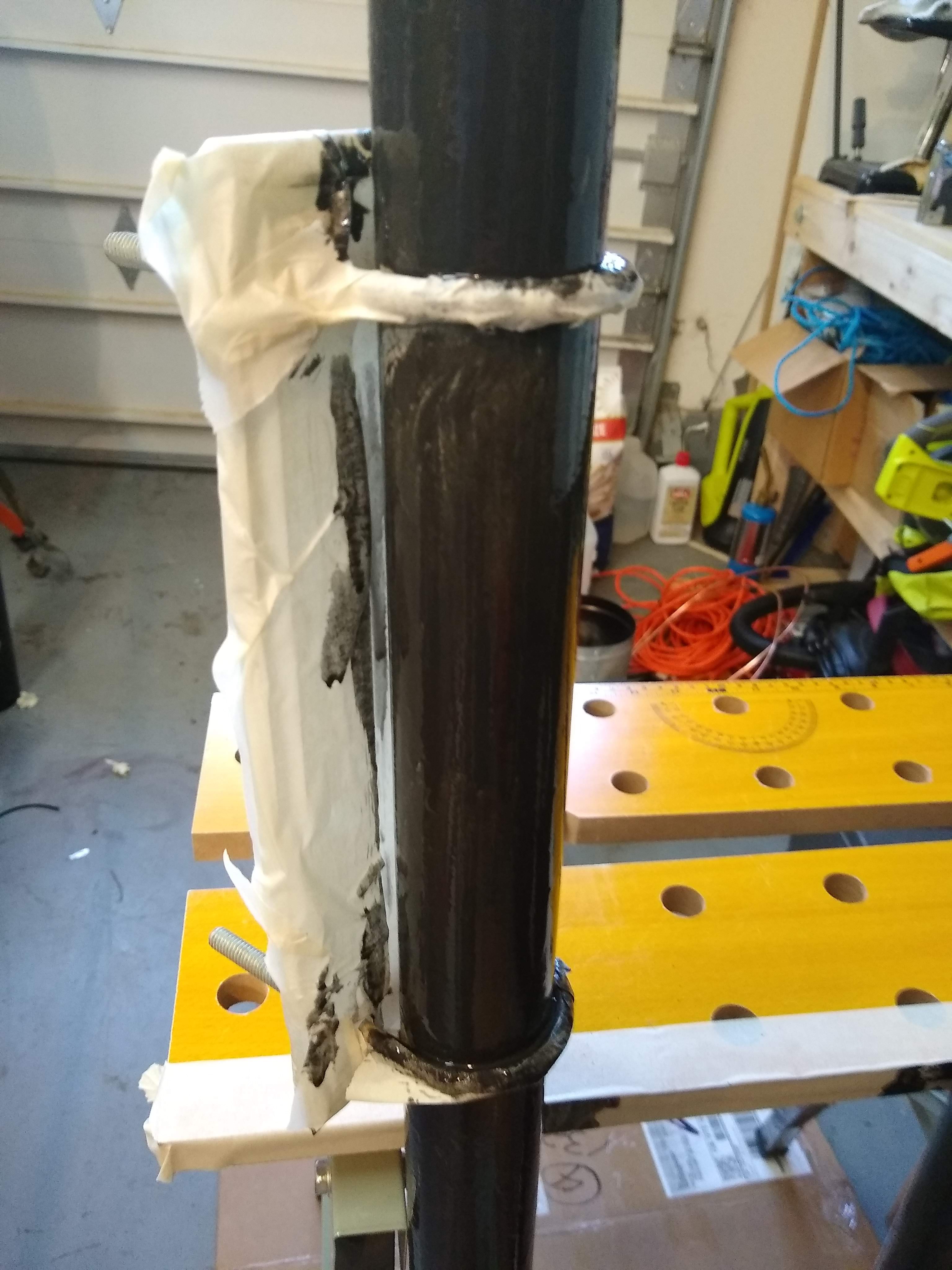 I had to clean all the grime and dirt from the parts. PNW winters encourage moss to grow on everything. After cleaning I went ahead and painted the mast with black acrylic to prevent further UV damage to the fiberglass.