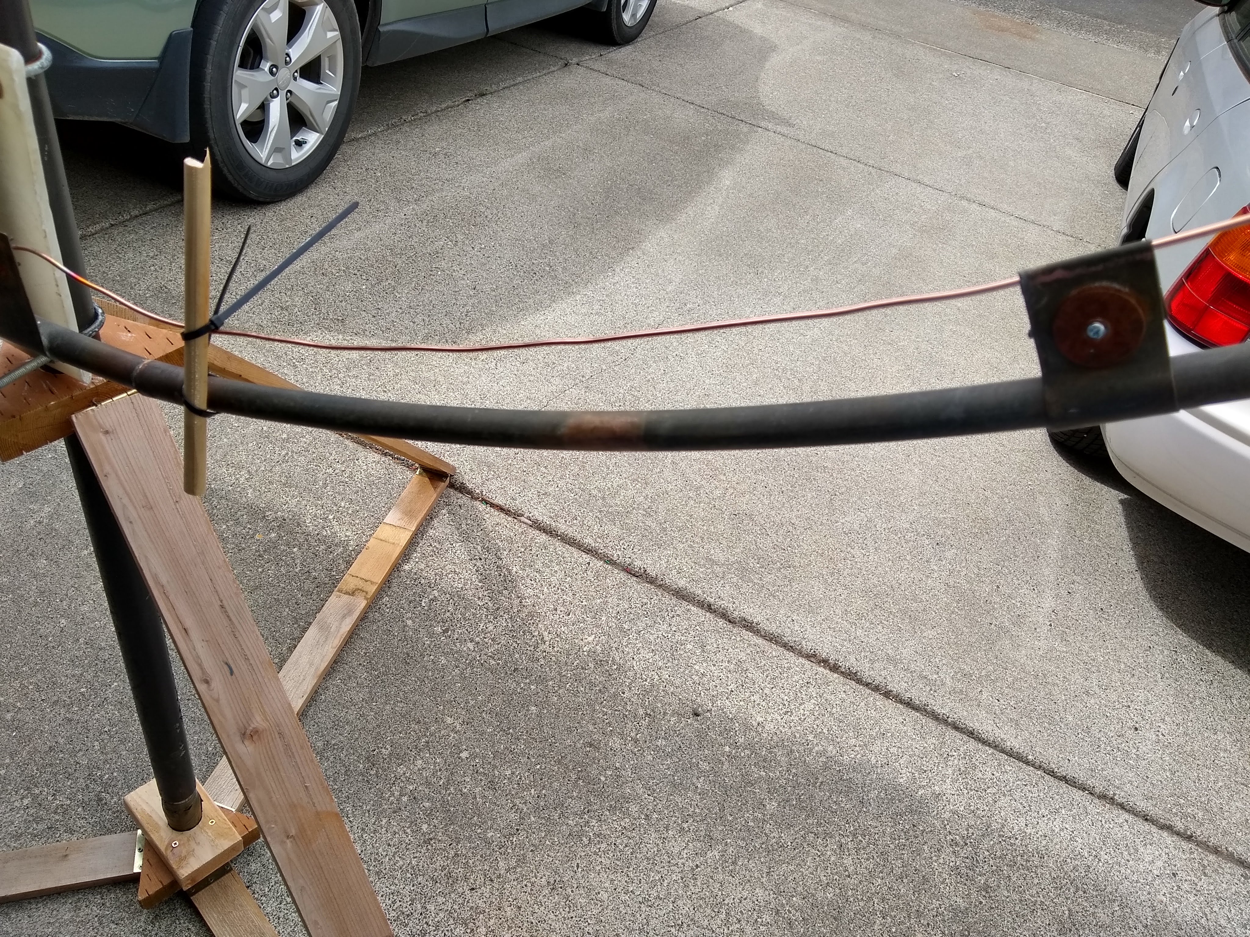 The gamma match as made didn't seem to want to tune up to 1:1 SWR, so I replaced it with 8 gauge solid copper wire. I may come back and replace it with a wider diameter pipe. For now it matches 1:1 SWR on both 40M and 80M.