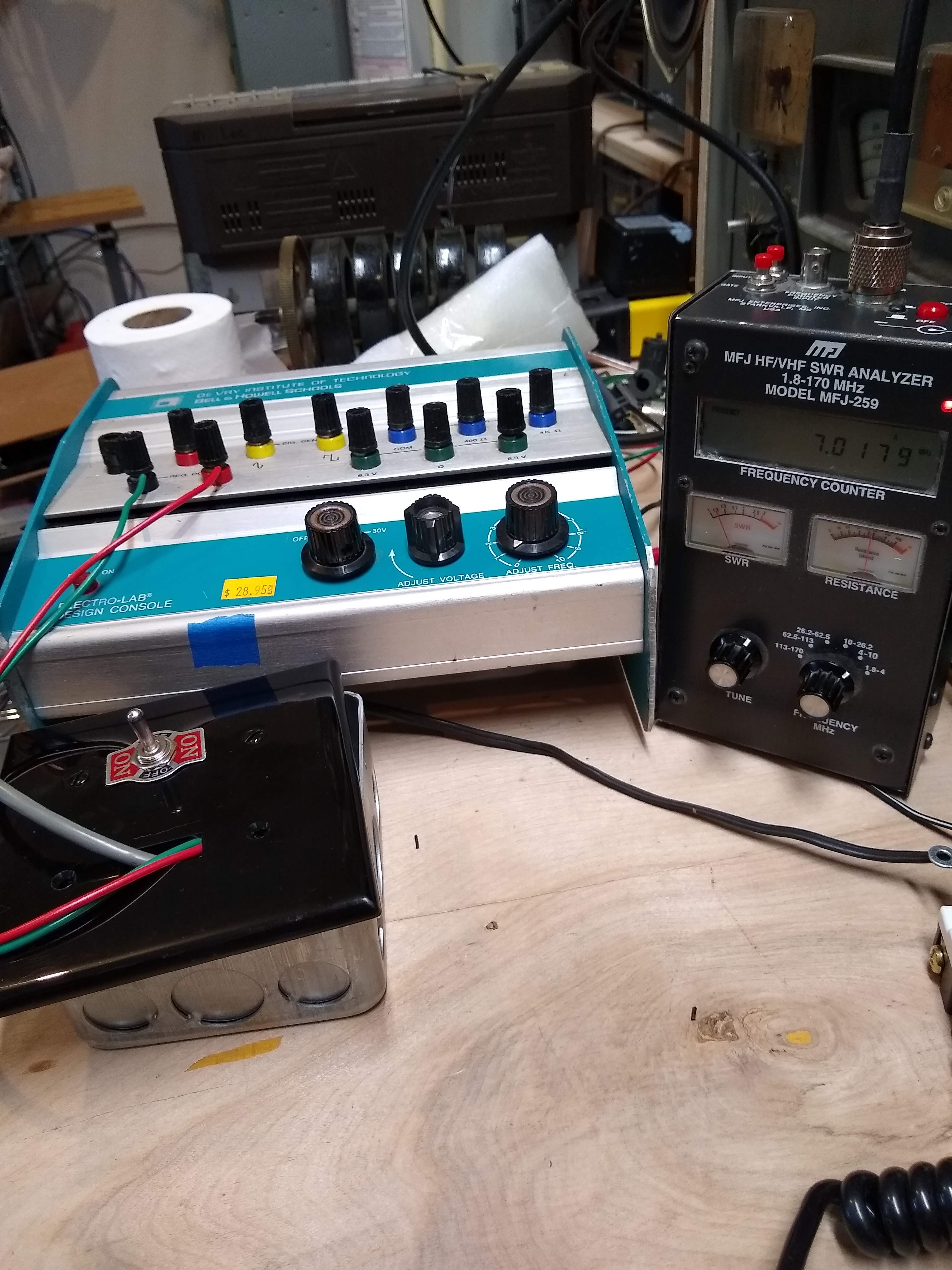 I have an old variable voltage power supply, which I rigged together with a reversing switch to tune, either buy transmitting a low power or with the MFJ SWR meter. I will eventually construct a better/single housing for the whole assembly.